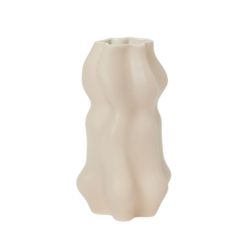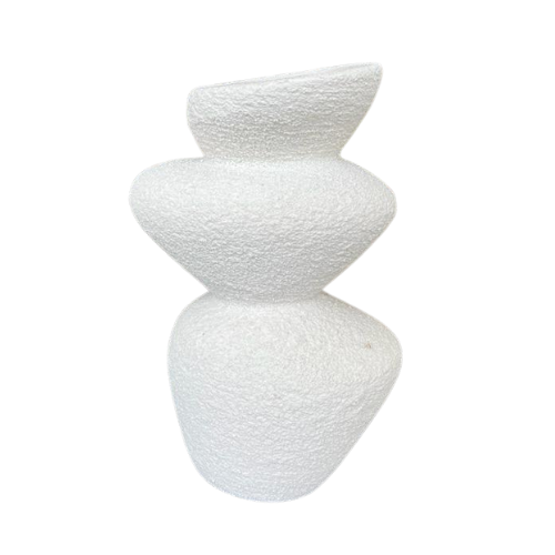Jarrón grande de cerámica de gres esmaltada. Diseño de formas suaves e irregulares con dos bases de diferentes anchos. Altura 30 cm. Diámetro supe...