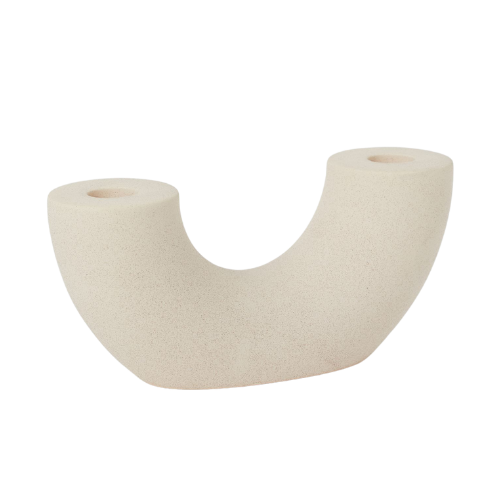 Base de cerámica con dos portavelas. Altura 9.5 cm. Longitud 20.5 cm. Diámetro de los portavelas 2.2 cm.